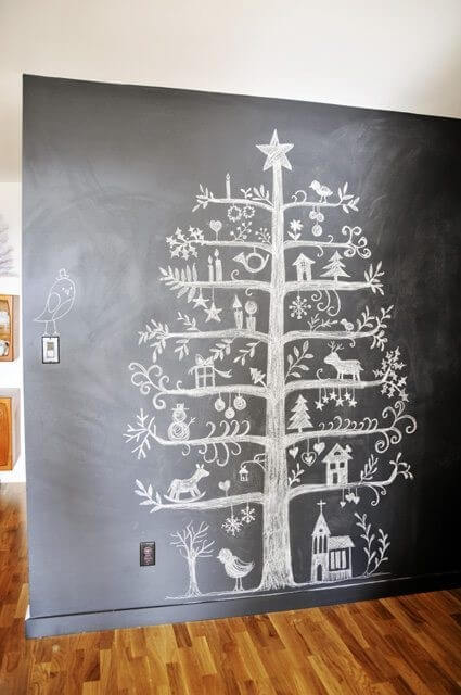 Uma ideia brilhante para ter sempre a sua casa decorada para todas as ocasiões com um investimento mínimo de tempo, é pintar uma parede com tinta de giz (pintura que transforma qualquer parede num quadro negro) e fazer um desenho de acordo com cada ocasião em cada momento.