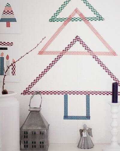 Uma das maneiras mais baratas e simples de fazer uma árvore de Natal DIY é com fita washi.