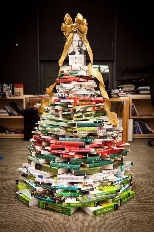 Ideal se você é um leitor fiel que não sabe onde colocar os livros, esta árvore de Natal de livros irá surpreender a todos. Você apenas tem que ter muito cuidado ao empilhar e colocar em um local seguro.