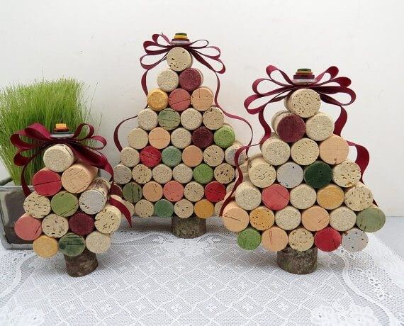 Você gosta de vinho? Se assim for, comece a coletar rolhas agora e tenho certeza que em breve você terá o suficiente para fazer uma árvore de Natal. Você pode pintar algumas extremidades de verde ou vermelho, depois basta juntá-las.