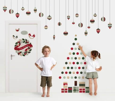 Se você tem crianças muito pequenas e quer que elas se envolvam na decoração de Natal, pegue alguns adesivos na forma de círculos e mostre a elas como colocar estrategicamente juntos para formar uma bela árvore de Natal como esta.